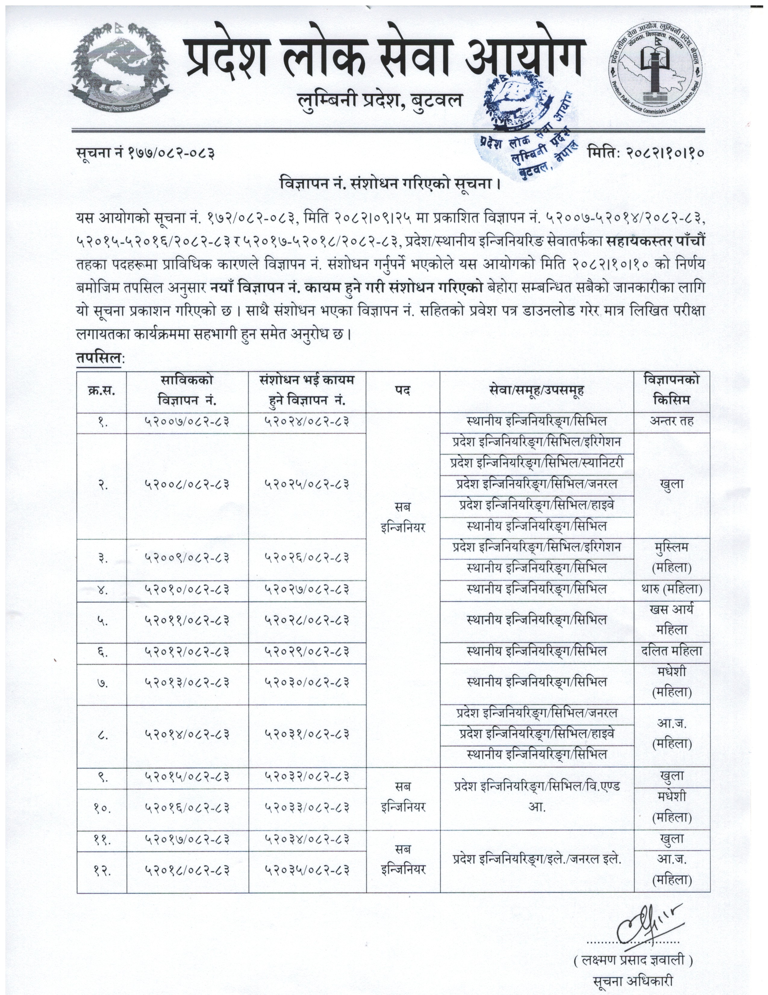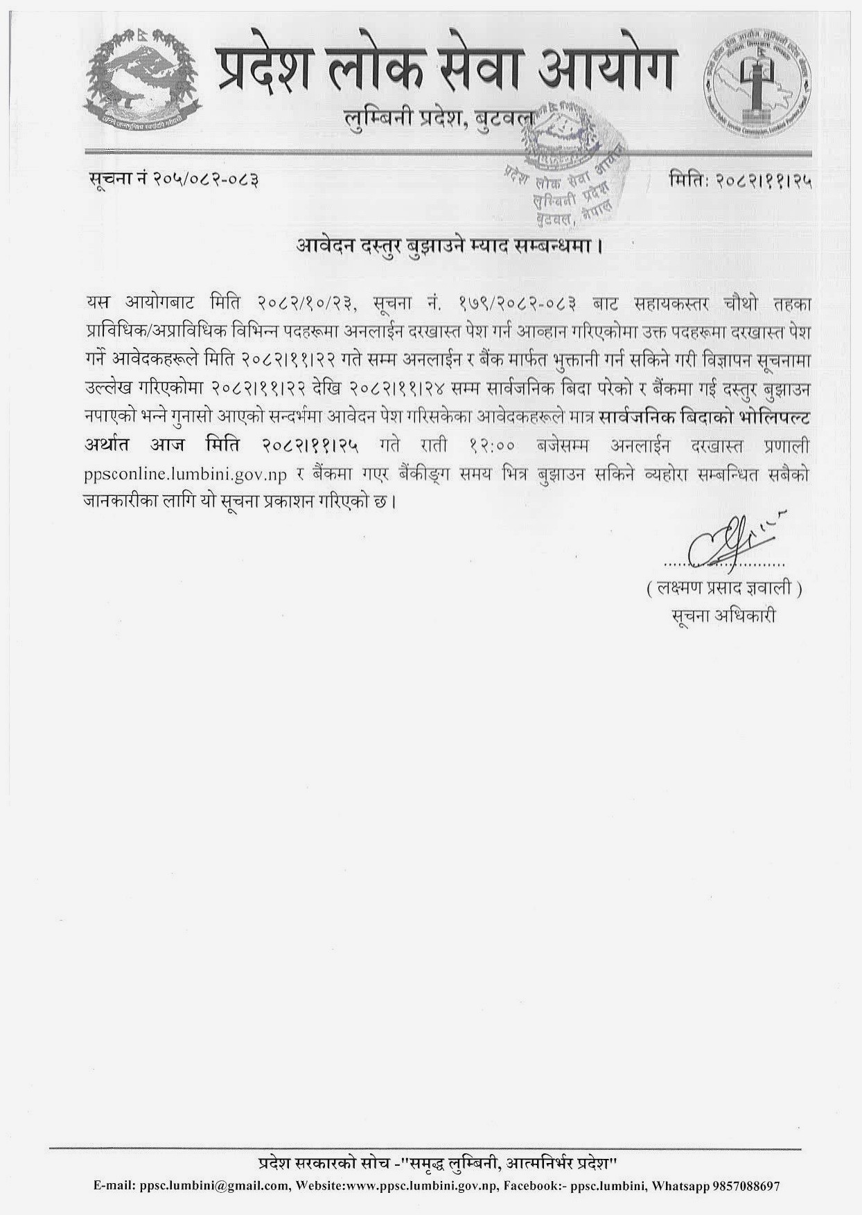 प्रदेश लोक सेवा आयोग, लुम्बिनी प्रदेश