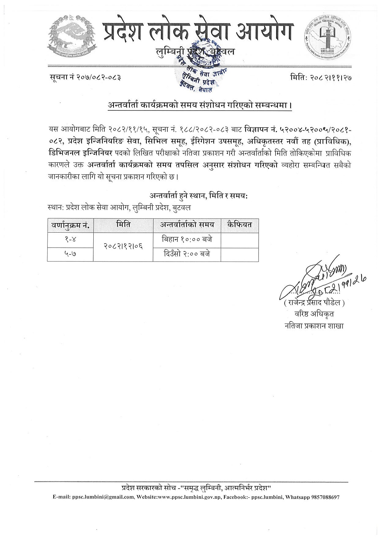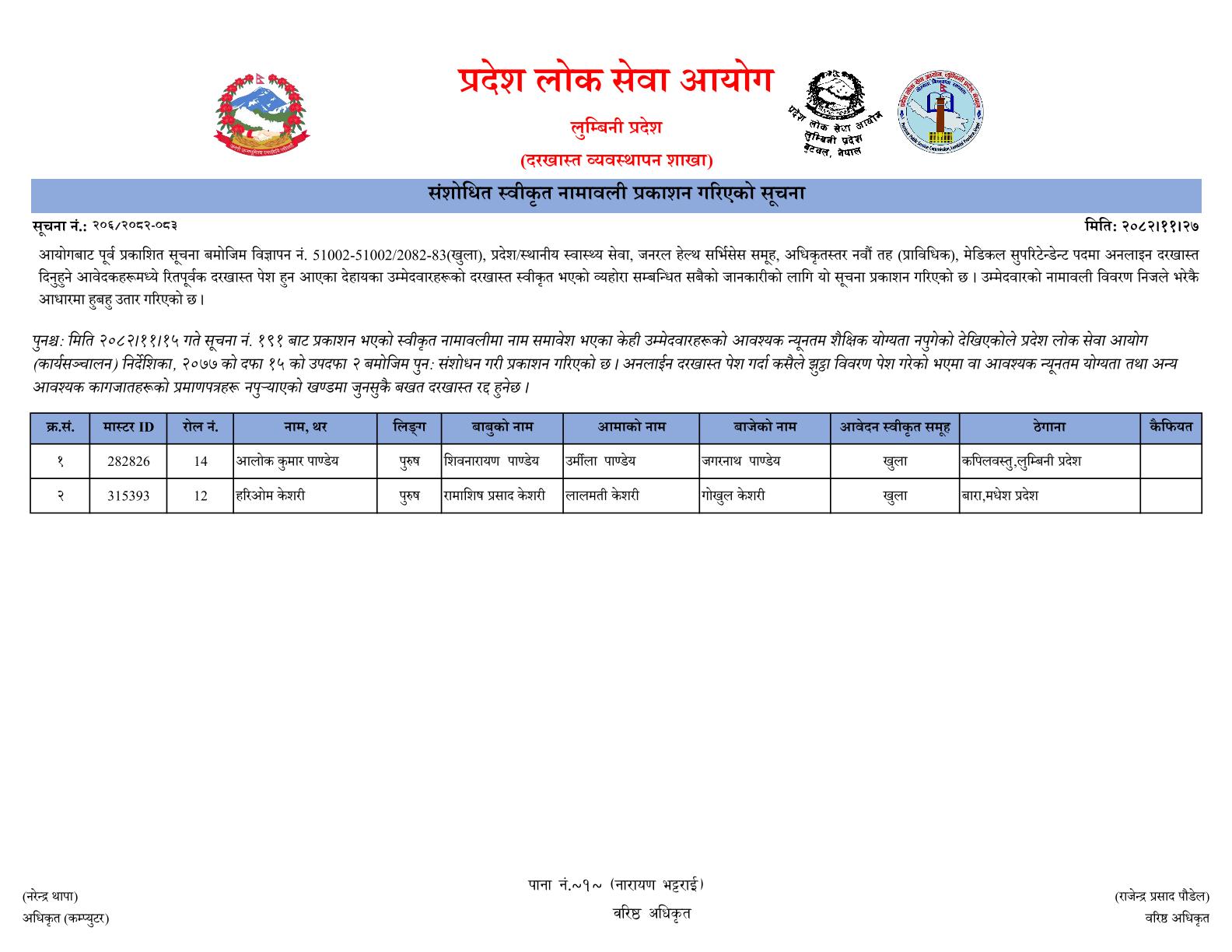 प्रदेश लोक सेवा आयोग, लुम्बिनी प्रदेश